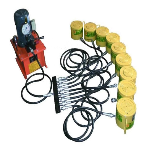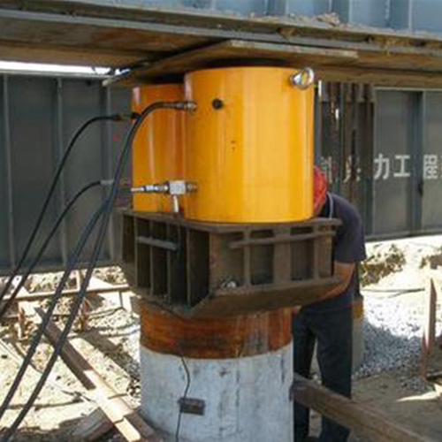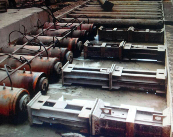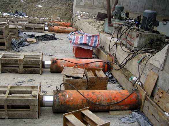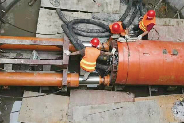 通過(guò)中間的小千斤頂?shù)纳靹?dòng)作推動(dòng)外套往前伸出,外套向前推動(dòng)管節(jié)一段距離。